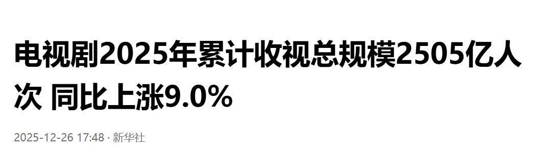 《电视剧2025年累计收视总规模2505亿人次 同比上涨9.0%》(新华网)